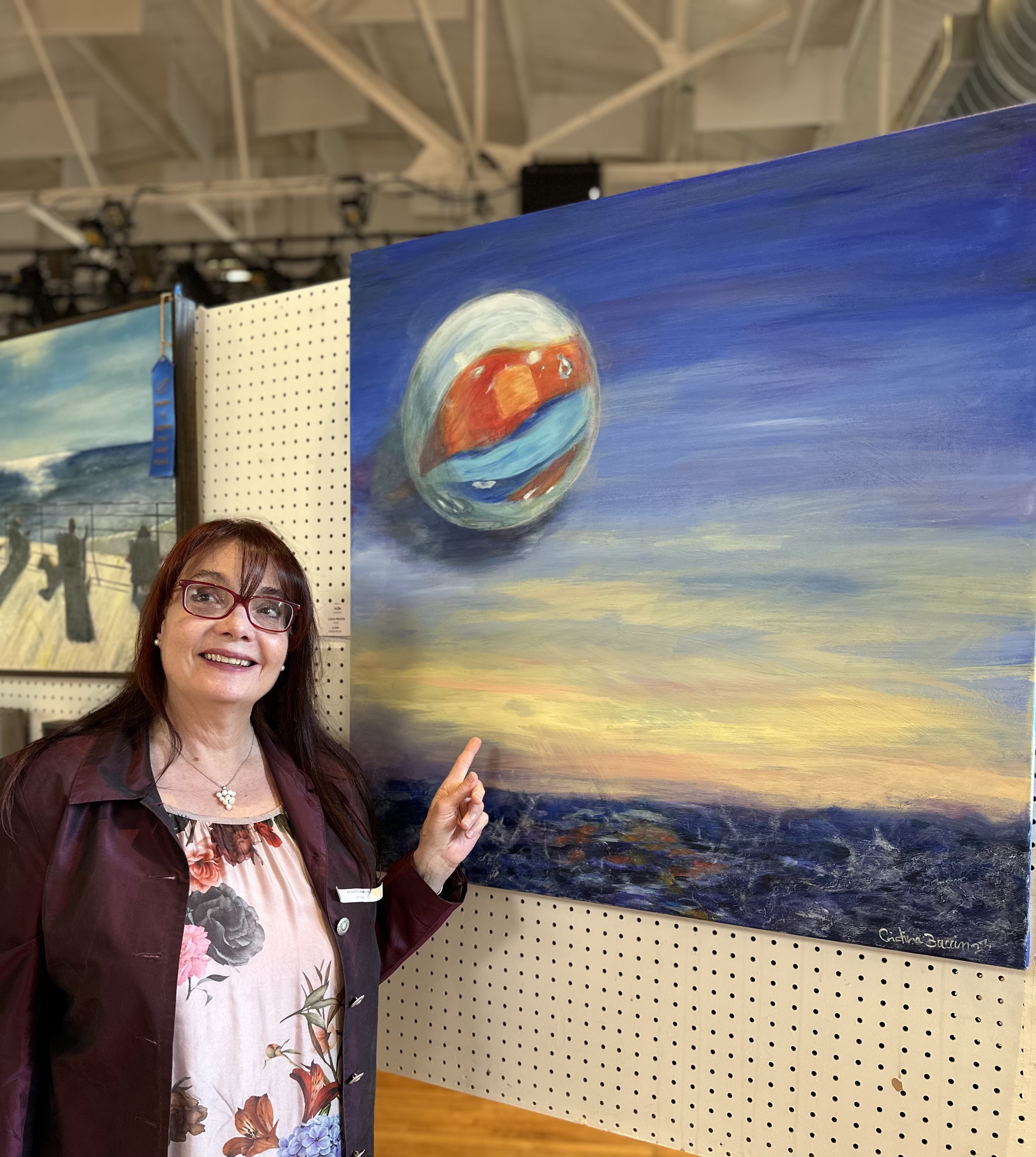 Published 3 September, 2023 at 3022 × 3376 in Biglia libera / Loose marble / Canica suelta Exhibit “Paint the town”, MAA, Kensington, Maryland ‹ Return to post