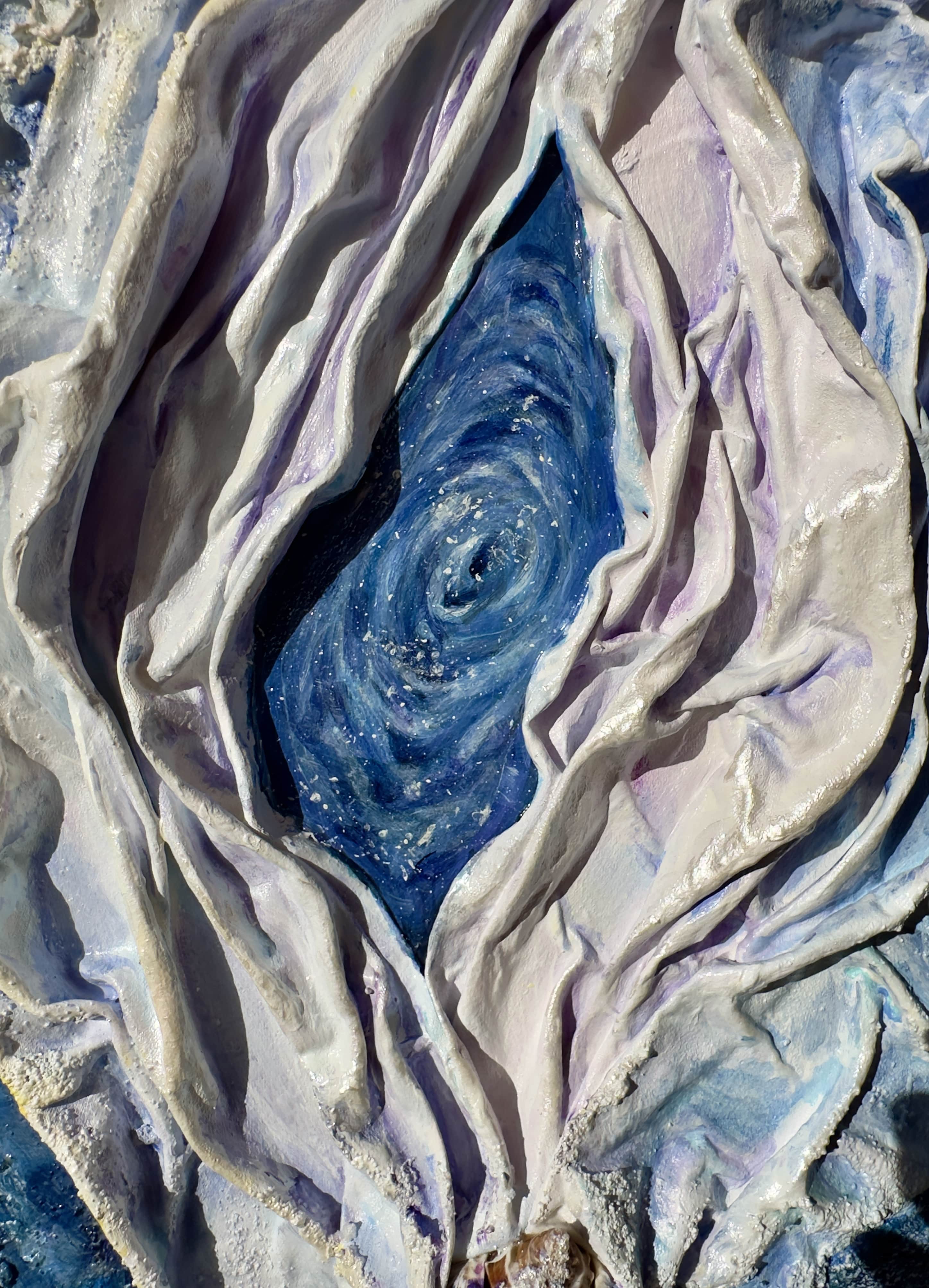 In my artwork, the inferno is a constellation specifically aimed at the oppressors of women’s bodies and lives where the Planeta Vagina is intended for rapists and abusers of girls and women. Instead of the fire of a hell, on this planet there is ice and a gigantic frozen vulvar and vaginal territory where rapists, abusers and predators are condemned to live in a freezing environment forever, at -130º F (a temperature similar to the lowest temperatures in Antarctica).