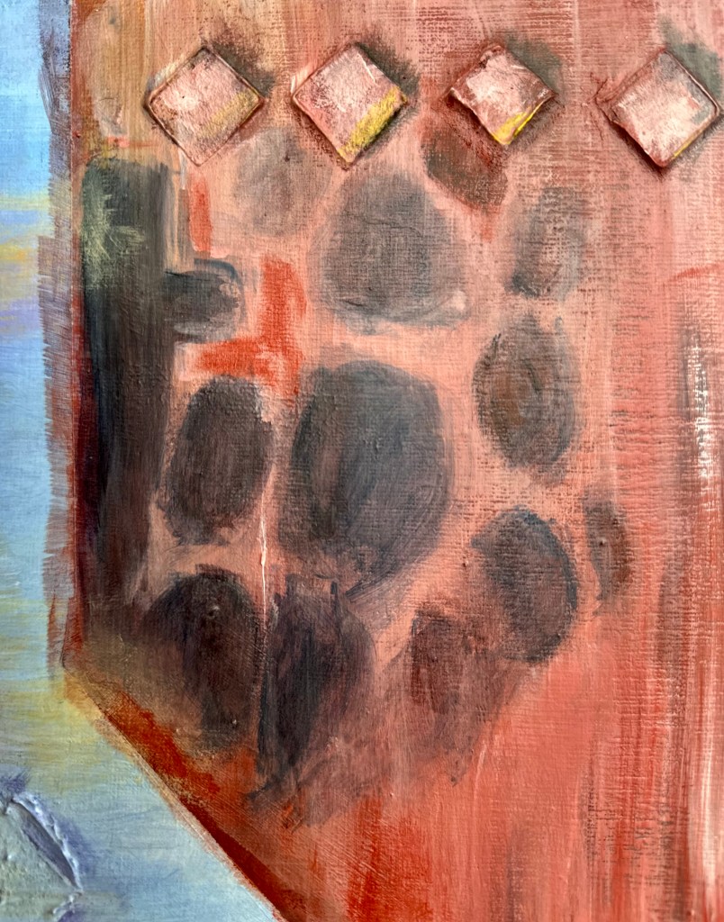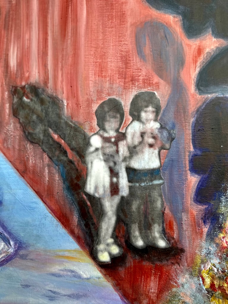 Esta pintura avanzó mientras yo traducía al español dos libros sobre experiencias adversas de la infancia y, en especial, debido a un vívido sueño sobre ese período de mi infancia: ello me condujo a revisar recuerdos y a establecer un nuevo hilo de comunicación con algunos de esos niños (ahora adultos).